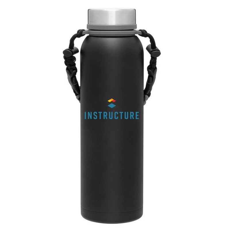 32 oz double wall 18/8 stainless steel thermal bottle with copper vacuum insulation, insulated stainless steel threaded lid, silicone ring, removable strap with buckles, removable clasps, and powder coated finish · gift box included